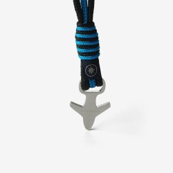 Dive into a world of coastal elegance with the Azure Marine Nautical Rope Bracelet. This striking accessory features three meticulously braided nautical ropes, with two ropes in sleek black and a vibrant blue rope gracefully woven in the middle. The contrasting colors evoke the mesmerizing depths of the ocean, symbolizing adventure, tranquility, and a deep connection to the sea. Enhancing the design further, a twist of black and blue nautical rope adds a touch of sophistication next to the sleek silver clamp.