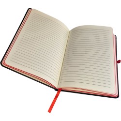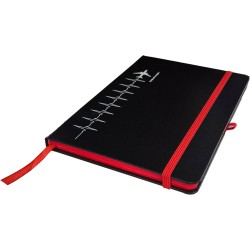 A5 notebook with 160 lined pages with elastic band closure, colored edges and pen holder.