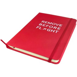 The A5 notebook has a cover made of imitation leather and includes 100 lined sheets.