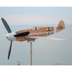 Transform your outdoor space with this premium stainless steel Messerschmitt Bf109F-4/trop aircraft model that functions as both a weather vane and kinetic wind spinner. This meticulously crafted 1:21 scale reproduction honors the legendary German ace Hans-Joachim Marseille, “The Star of Africa,” and his iconic Luftwaffe fighter.