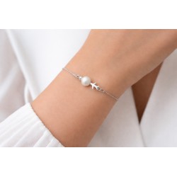 Elevate your accessory collection with our stunning silver bracelet featuring a round 8-10 mm white freshwater pearl, a handmade silver airplane charm, and a delicate silver bead. Adjustable in length with a 5 cm extension chain, this piece beautifully combines elegance and wanderlust.