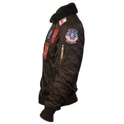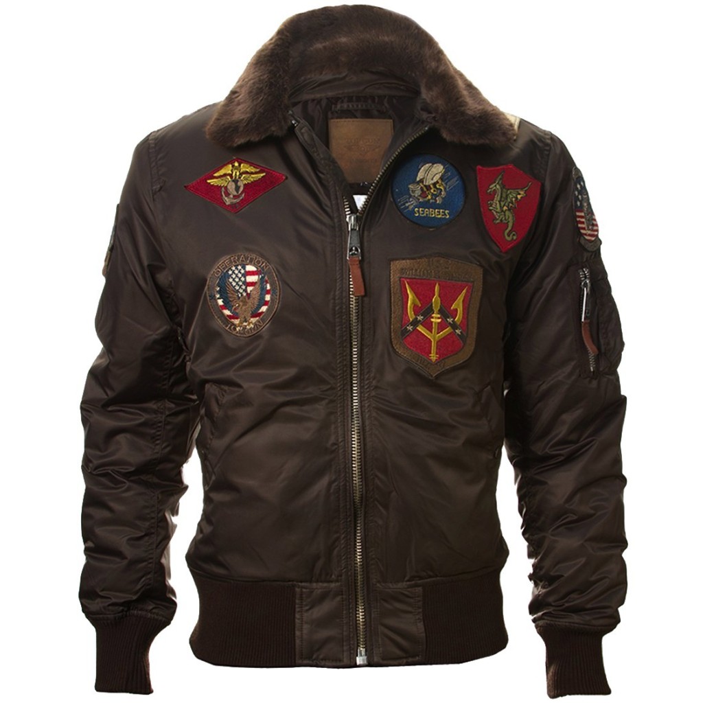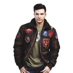 Top Gun® Official B-15 Men's Flight Bomber Jacket with Patches - Brown