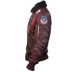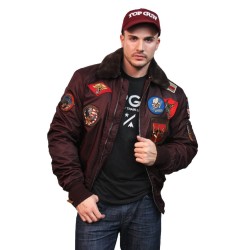 Top Gun® Official B-15 Men's Flight Bomber Jacket with Patches - Burgundy
