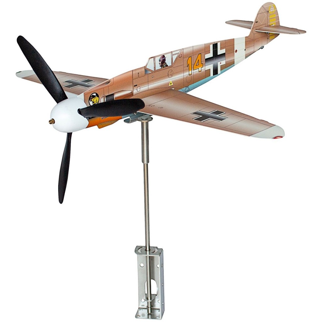 Transform your outdoor space with this premium stainless steel Messerschmitt Bf109F-4/trop aircraft model that functions as both a weather vane and kinetic wind spinner. This meticulously crafted 1:21 scale reproduction honors the legendary German ace Hans-Joachim Marseille, “The Star of Africa,” and his iconic Luftwaffe fighter.
